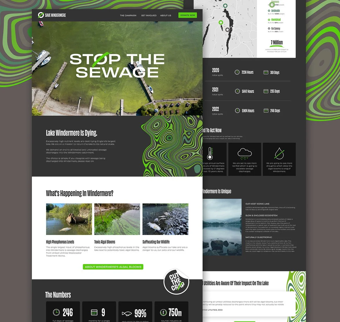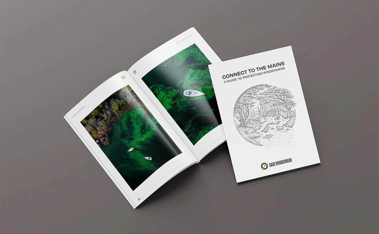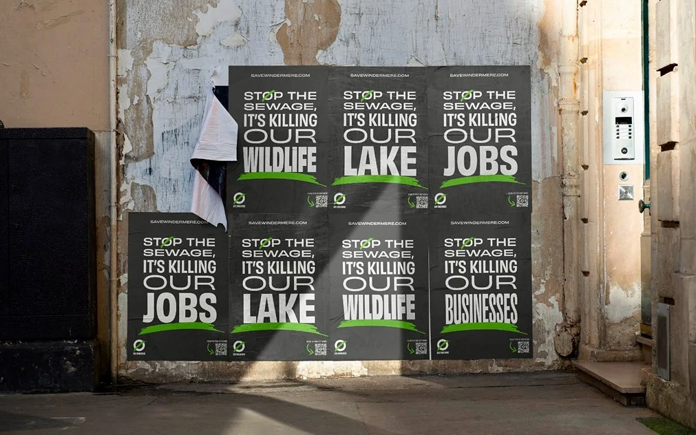 Save Windermere is a nationwide environmental campaign committed to ending all sewage discharges into Windermere. Working closely with the team, we developed a bold visual identity and website designed to raise urgency, build clarity and inspire public action. Through a brand strategy workshop, we defined the campaign’s core message and created a distinctive mark inspired by the sewage outflows impacting the lake. Paired with a vivid toxic-green palette and a custom algae pattern, the identity delivers a powerful and flexible visual language that strengthens awareness and amplifies the mission at every touchpoint.