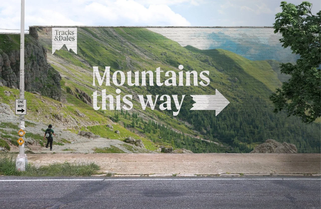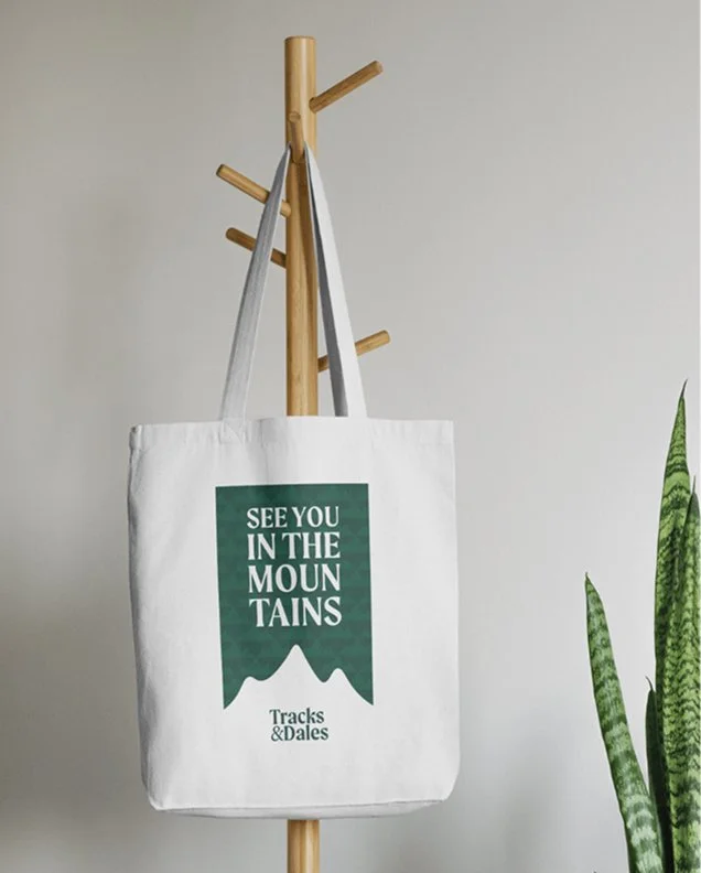 We partnered with Tracks & Dales to create a visual identity rooted in storytelling, connection and shared experience in the outdoors. At the heart of the brand is a distinctive logo mark designed to resemble a bookmark, with a subtle mountain form revealed through negative space. This concept reflects the stories people carry with them through challenge and growth, and the idea of opening a new chapter through shared outdoor experiences.